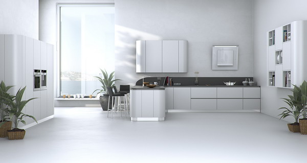 In the same line of modern and minimalist kitchens that suspended furniture proposes, we find this trend that hides the handles of drawers and cabinets, as we propose in model C1 of the Curve collection.