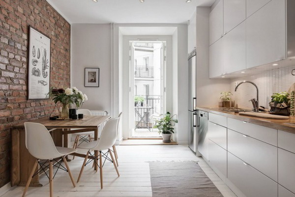 A painted brick wall can complement a Scandinavian or eco-style interior.