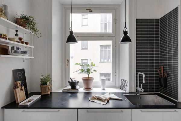 If the countertop is also a window sill, then this is a very fashionable and modern idea. In this case, it is better to abandon the curtains, leaving the window completely open. So in the kitchen there will be even more space due to the light from the window.