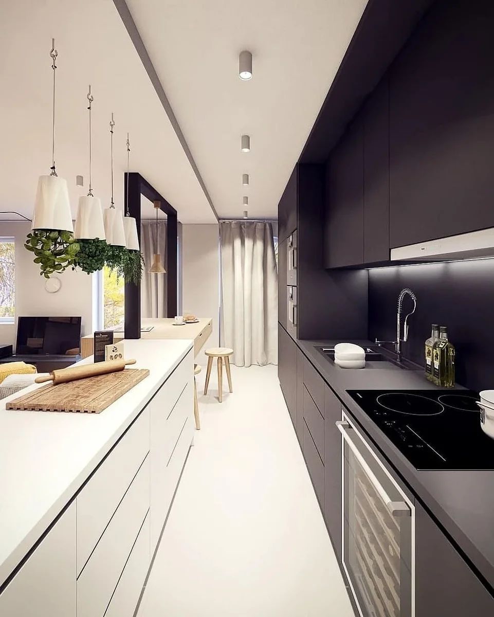 The less the kitchen resembles itself, the more fashionable it will become. Ideal if the furniture is generally invisible. You can choose wall decoration and facade cladding in the most similar materials and shades. For example, a stone texture, universal white color, or decorative plaster and facade for concrete will do well. A minimum of scenery, no panels and built-in laconic appliances – voila, your invisible kitchen is ready.