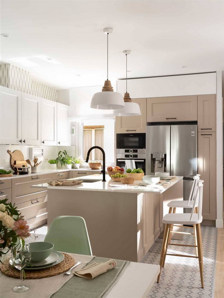 From Dos Design they provide another trend to take into account when renovating and decorating the kitchen: ” the so-called monoblock kitchens are making their way. What a few years ago was somewhat bland, is now a trend when it comes to decorating kitchens in a single tone”. Furniture in the same color -even coatings- where details such as black or gold taps stand out.