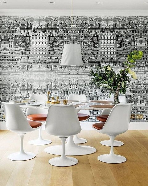 What other wallpapers are considered fashionable for the kitchen in 2024? Undoubtedly tual and graphics. These prints come from the world of fashion and are unlikely to leave the market in the next few seasons.
