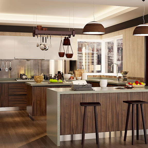 A vintage look in your kitchen will always be fashionable, for that we recommend the use of woods rich in tone and texture. In addition, mixing with different materials such as granite, quartz and stone will give your kitchen a very beautiful appearance. In our showroom we have a wide variety of wood finishes for your kitchen.