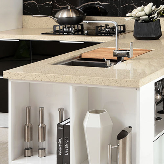 Quartz stone kitchen counter: High hardness, long service life and allows direct contact with food