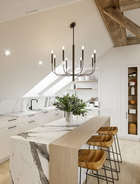 White and beige is a trendy kitchen interior design trend in 2023. These colors blend perfectly with rustic, Scandinavian and classic styles and go well with modern wood furniture. Thanks to them, a small space will become neat, clean, very bright, and most importantly – optically enlarged.