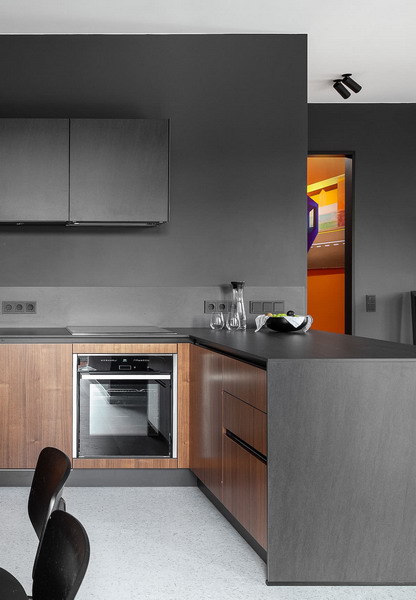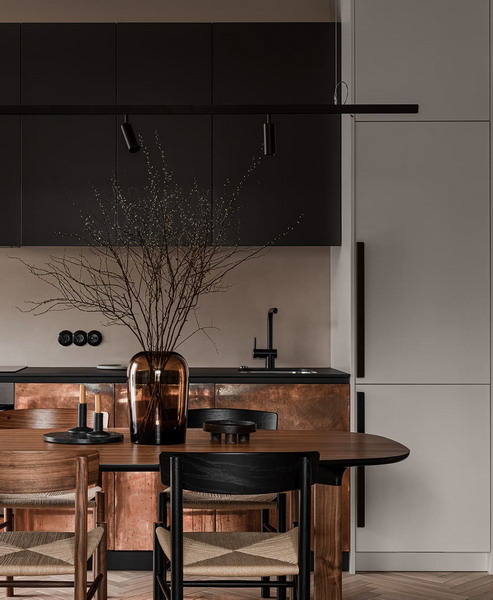 Composition with black is a great solution when the kitchen has furniture of the same color. Black color in the interior is experiencing a kind of renaissance. It is not often found in the interior and presents an interesting alternative to white and pastel colors.