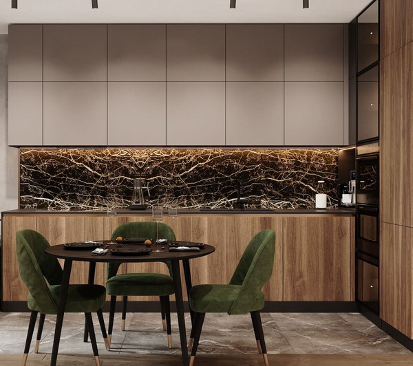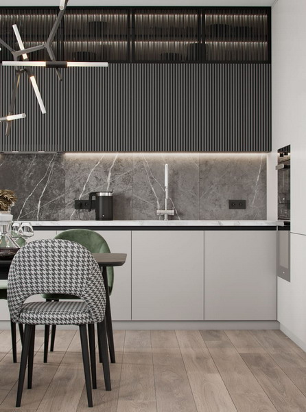 Stylish accents will provide the necessary volume to the room (countertop in a contrasting color), add an atmosphere of chic and wealth to the stylish interior of the 2023 kitchen.