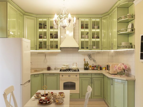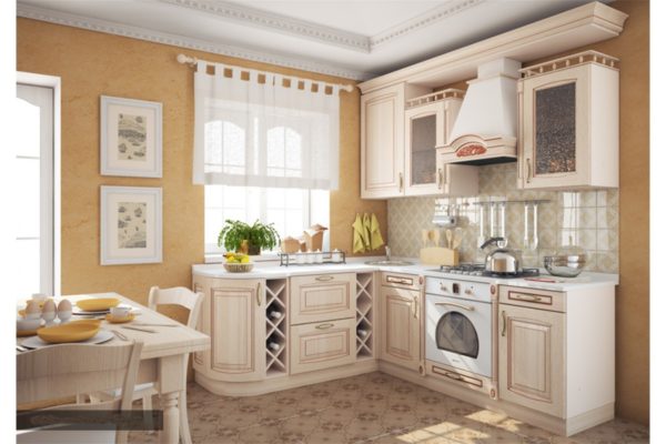 Corner kitchens are chosen in classic beige, cream, dairy designs.