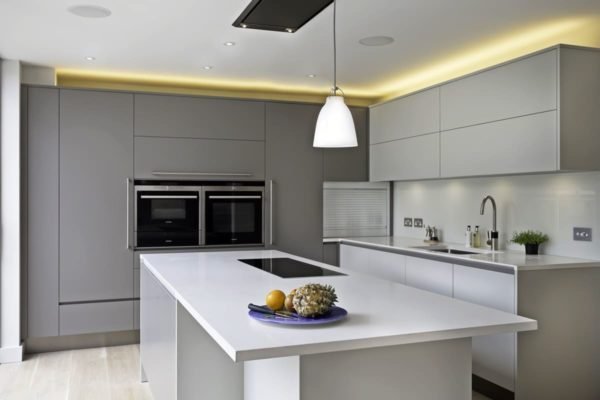 - L-shaped kitchen takes up more space than straight version. If the cooking process takes little time and supplies are minimal, it is better to use a linear headset;