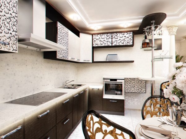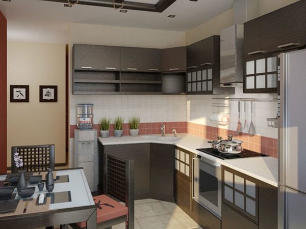 The design of a corner kitchen is considered universal. It is based on a combination of three components: a dishwashing area, food storage and food preparation. The advantages of such improvement are: