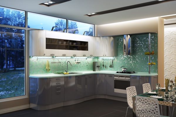 The classic style kitchen is relevant at all times. It differs in comfort and functionality, easily adapts to different stylistic changes. For lovers of modern technology, high-tech style is suitable. The predominance of blue, lemon, red shades look great for a corner kitchen in modern style.