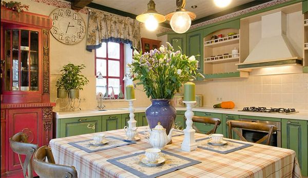 Associated with France, lavender fields, the Eiffel Tower. One of the most popular designs that epitomizes aesthetics and versatility. Wooden materials, tablecloths and curtains made of natural fabrics are used: linen, cotton.
