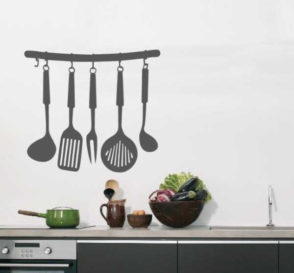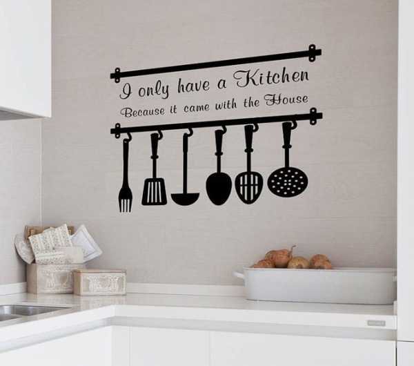- The use of thematic stickers is one of the most democratic and affordable ways of decorating walls in the kitchen. Today, manufacturers offer hundreds of drawings: complex and simple, multi-color and monochrome, funny and sophisticated – to create a unique atmosphere in the kitchen.