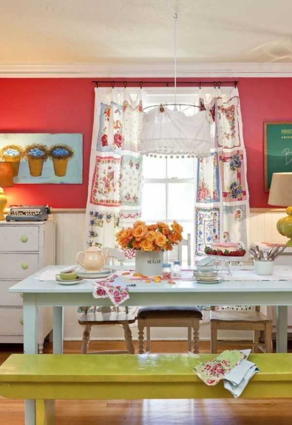 Stylish napkins in the tone of a long tablecloth on the kitchen table will make the atmosphere in the kitchen home and cozy, and if you add chair covers in the same color scheme, you can get a real sophisticated ensemble. In addition, both the tablecloth and the covers can hide the flaws of the old furniture.