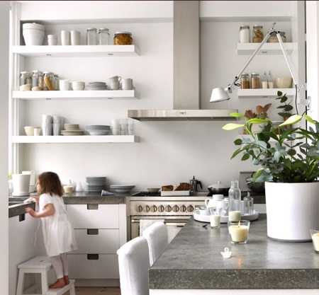 - Open shelves instead of tightly closed cabinets are not only decoration of the kitchen, but also adding extra space to it, because open shelves do not clutter up the room, but add air to it.