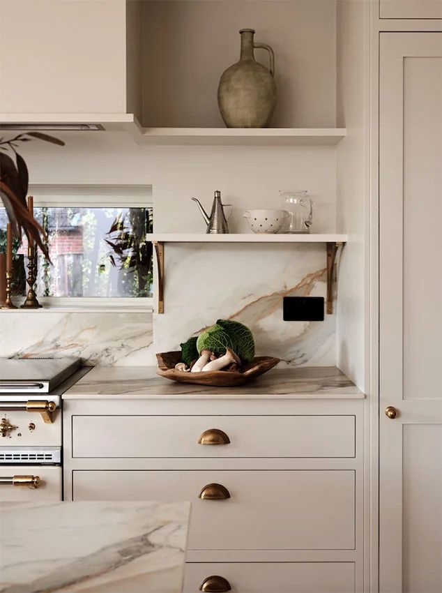 A tip: if you don’t want to get rid of your upper cabinets, remove the doors from some and convert them into open modules with shelves.