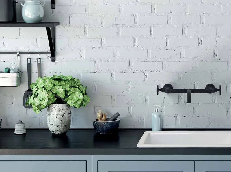 Small kitchens need clear countertops, where you can have a work area without clutter. That is why it is worth choosing a built-in faucet for the sink. It won’t take up an inch of your countertop and also makes cleaning easier.