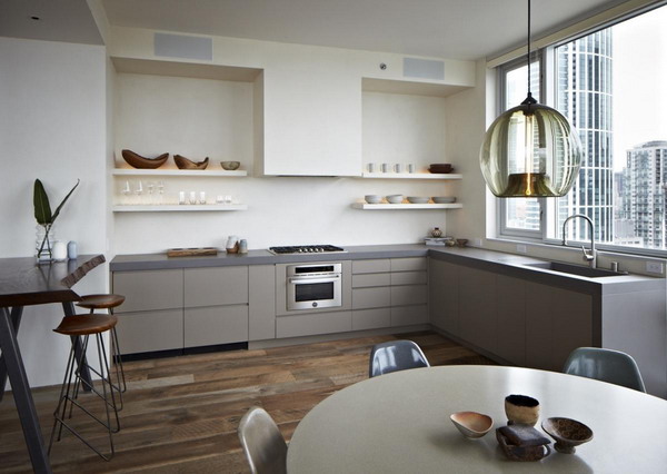 Designing a stylish kitchen in one color is a universal solution. It will never go out of style. To ensure that the accessories do not merge, it is recommended to combine dark and light shades.