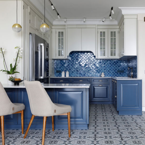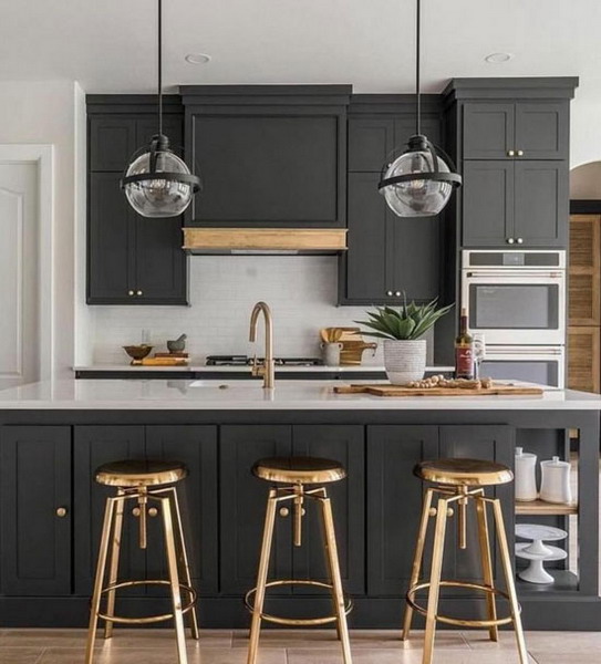 The minimalist and elegant tone is perfect for modern and traditional kitchen fronts. It goes well with white, light gray, steel shades, golden decor, natural wood texture. Usually plays the role of the darkest element of the finish. Remarkably, the most sophisticated and exciting color when it comes to kitchens is midnight blue. This is a recent trend.