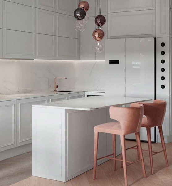 Its task is to create a welcoming environment in the interior of the kitchen. Surrounded by unobtrusive, low saturation and not overtaking beige, cream, sand and other shades, it is easier to focus on the value of communication and each other’s personality. Calm accents in furnishings will be key in 2023. Hints of deep pink, soft gray and green will create a refreshing sensation.