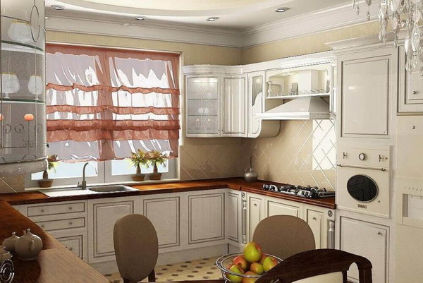 • a large number of appliances – in addition to the refrigerator and stove, install in a prominent place food processors, toasters, microwave ovens (the main thing – that all appliances are harmoniously combined with each other);