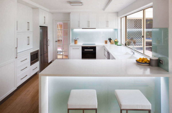 Of course, the most popular color in modern kitchen design is always white. Despite its seeming impracticality, it gives the room freshness and a sterile look. In addition, all versions of white are universal and go well with all other colors. There is no need to even seek the help of a specialist – you can add a little bright accents to a clean white kitchen. Let it be chairs, curtains, small decor items. Fantasize and boldly turn your ideas into reality!