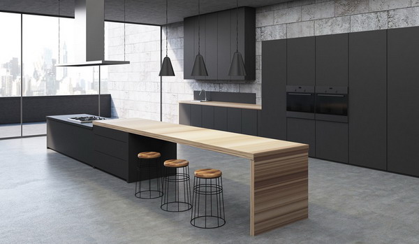 There are still great kitchens that can be designed in candy-like, intensive colors such as red, yellow or blue, but at least in the contrasting color accents, dark colors and natural tones are increasingly seen in the current kitchen trend. Although natural colors are becoming more popular again, there is a predominance of dark tones that include gray, brown, and even black. This may also be due to the fact that they come into their own with some of the new materials.