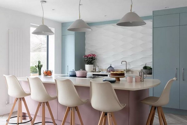 Most kitchen countertops, especially for breakfast bars, use contrasting materials like wood and quartz, as well as composites of varying thicknesses. A curved seating area is also more sociable than a small dining area with angular shapes. Accordingly, after 2024 it looks like more curved cabinets will also be incorporated into the kitchen design, but keeping the perimeter at right angles – this will make the islands more interesting, individual and more of a statement piece to introduce personality.