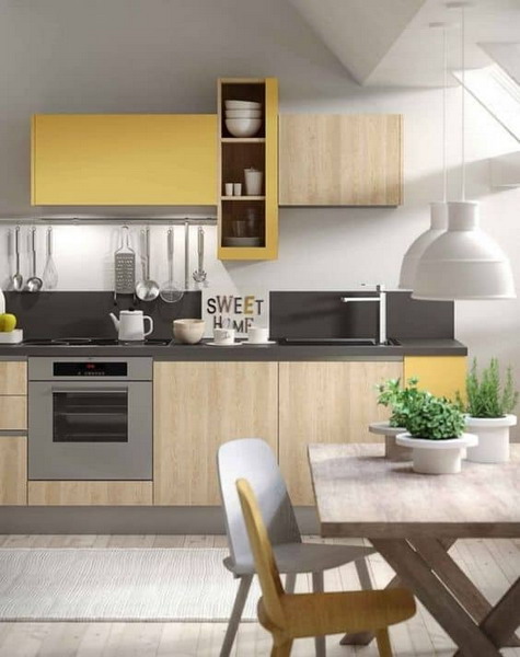 Yellow has the advantage of bringing pep to your kitchen. Warm, invigorating and sunny, yellow makes your interior shine! Adopt it in small touches to give character and modernity to your kitchen.