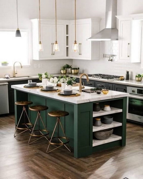 Green, or the star color of 2020, will find its place in your kitchen and will be a charming ally! It invites itself on the fronts of cupboards, in decorative objects or even on wall paintings. It has the chance to associate as well with light colors such as white as with kitchen furniture in natural wood. From fir green to comodoro green, it brings an elegant, refined and serene touch. A kitchen with a natural spirit.