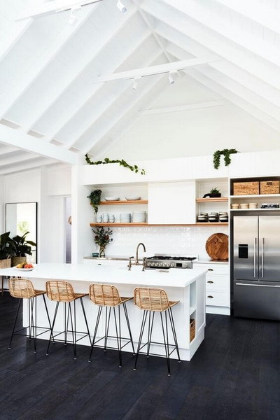 White has always been invited into our interiors, a timeless and modern color, it remains a safe bet. Sobriety and purity are the words that best describe it. It projects you into a zen and soothing atmosphere that appeals to relaxation and daydreaming. You can choose white for a full white kitchen or a little touch.