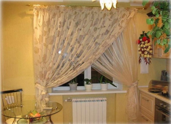 The operational properties of the product, as well as the external design of the window opening, will depend on the selected material. When choosing kitchen textiles, it is important to understand that there are frequent temperature changes in this room, and during the cooking process, products are subject to contamination.