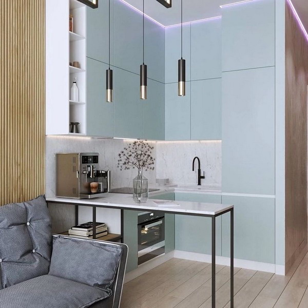 The modern interior of a small kitchen does not impose certain rules on its design. The most important thing is to reflect personal preferences about comfort, beauty and comfort in the interior. When creating a design, you can even combine the features of different styles, but do not forget about harmony and aesthetics. Simple materials, neutral tones and modern high-tech household appliances will definitely help in shaping the look of your unique kitchen.