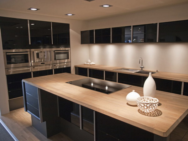 Today wall cabinets are out of fashion. Designers recommend floor cabinets or island cabinets for storing dishes and products.