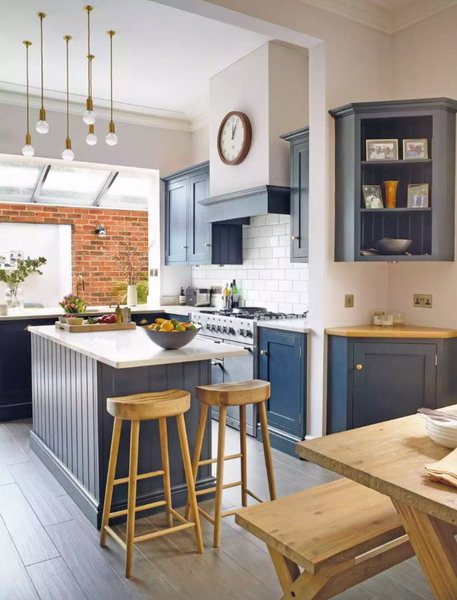 Matte or shiny, golden accessories enhance each party outfit. In interior decoration, including in the kitchen, the golden touches well used only make the gourmet room shine. Gold has no equal when it comes to illuminating an already very bright room. So if you want to get your white kitchen out of boredom, go for the golden finishes. Sink, faucet, pendant lights, dishes, chairs, tiles… you are spoiled for choice! And because the little black dress and the golden jewel go hand in hand, the black kitchen with golden touches always has a maximum effect. Ditto for the kitchen in navy blue or duck blue.