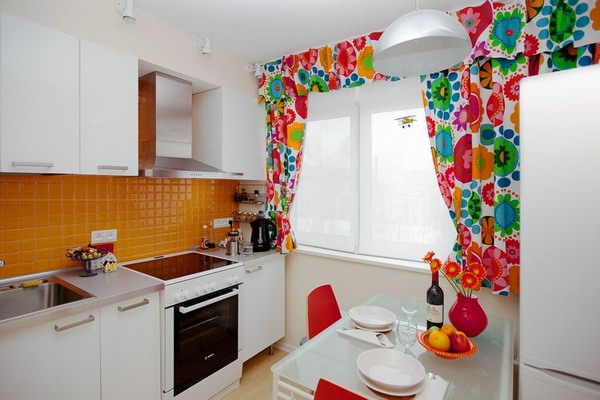 - Wallpaper and curtains in the kitchen should be in harmony with each other.