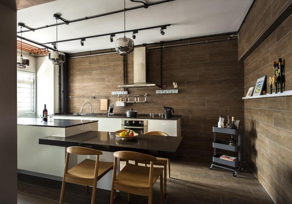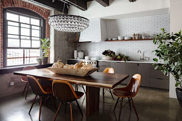Loft-style kitchen using brickwork as wall decoration